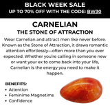 Carnelian is a vibrant red-orange gemstone from the chalcedony family, prized for its warm energy and rich glow. For centuries, it has been used as a stone of confidence, sensuality, and attraction—especially for igniting passion and drawing love into one’s life.